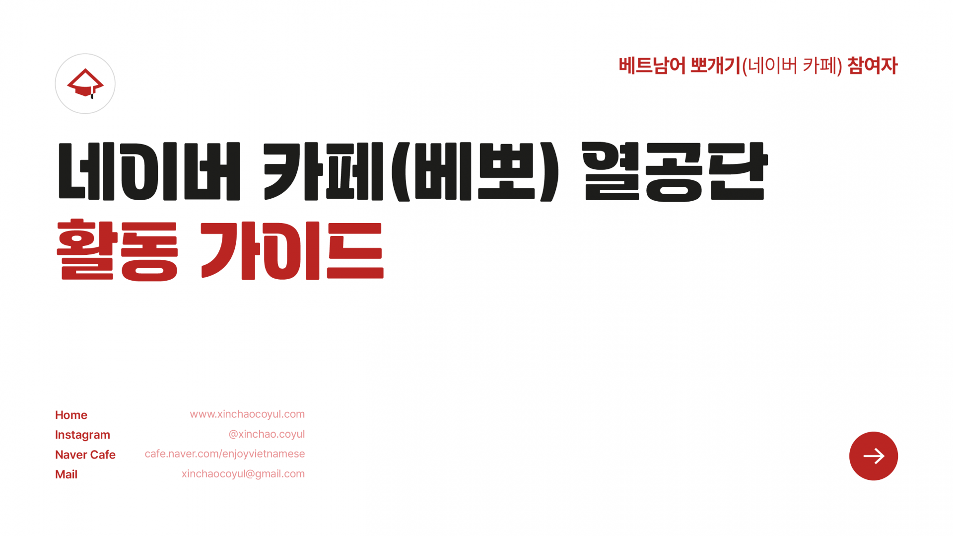 ![]() | 네이버 카페(베트남어 뽀개기) 열공단 참여자 열공단 신청방법 자세히 보기(클릭) > |