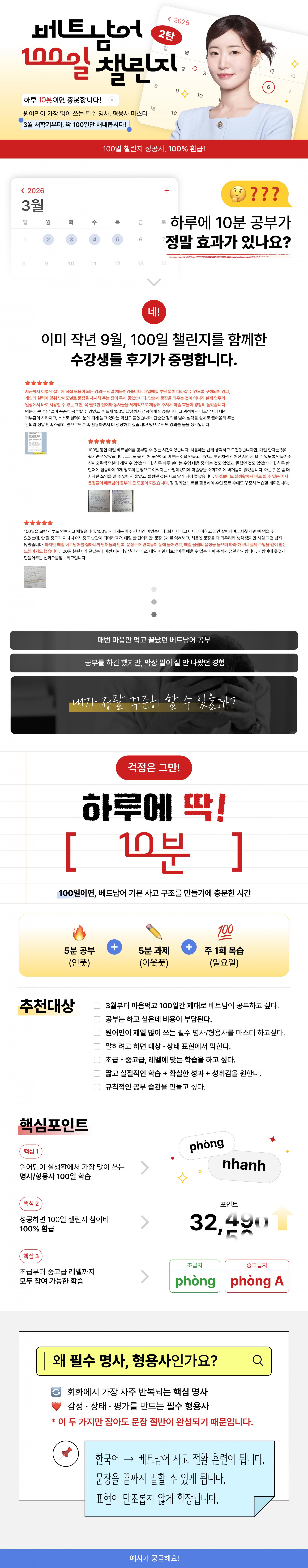 [2/8 오픈예정] 100일 베트남어 필수 형용사,명사 챌린지BESTSOLDOUT판매대기