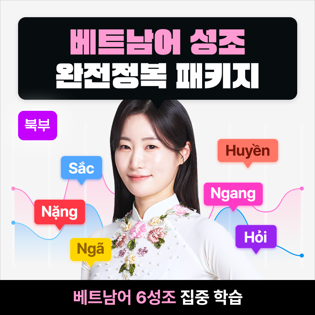 | 강의 목록 | [1강] 베트남어 발음체계 및 꿀팁 [2강] 단모음 [3강] 단자음1 [4강] 단자음2 [5강] 복자음 [6강] 복모음 [7강] 성조 [8강] 받침 [9강] 단어/문장 읽기 [10강] 기본 문법/어순 | [1강] Ngang 성조 [2강] Sắc 성조 [3강] Huyền 성조 [4강] Hỏi 성조 [5강] Ngã 성조 [6강] Nặng 성조 | [입문1] 총 10강 [입문2] 총 10강 [초급1] 총 15강 [초급2] 총 15강 | [1강] DAY 1 [2강] DAY 2 [3강] DAY 3 [4강] DAY 4 [5강] DAY 5 [6강] DAY 6 [7강] DAY 7 [8강] DAY 8 | [1강] 필수단어 패키지 1탄 [2강] 필수단어 패키지 1탄 [3강] 필수단어 패키지 1탄 [4강] 필수단어 패키지 1탄 [5강] 필수단어 패키지 1탄 [6강] 필수단어 패키지 1탄 [7강] 필수단어 패키지 1탄 [8강] 필수단어 패키지 1탄 [9강] 필수단어 패키지 1탄 [10강] 필수단어 패키지 1탄 [11강] 필수단어 패키지 2탄 [12강] 필수단어 패키지 2탄 [13강] 필수단어 패키지 2탄 [14강] 필수단어 패키지 2탄 [15강] 필수단어 패키지 2탄 [16강] 필수단어 패키지 2탄 [17강] 필수단어 패키지 2탄 [18강] 필수단어 패키지 2탄 [19강] 필수단어 패키지 2탄 [20강] 필수단어 패키지 2탄 |