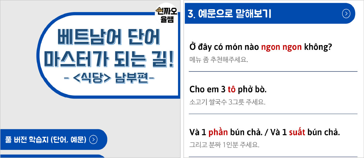 [남부] 베트남 여행, 실생활 필수표현 쉐도잉 - 식당편