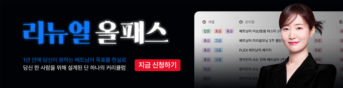 추천대상 신 짜오율쌤 강의를 체험해보고 싶은 분 추천레벨 - 강의목록 10강 발음종류 남부발음 + 북부발음 수강일수 48시간 무료