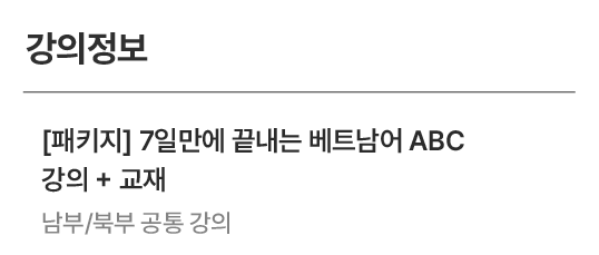A. 우측 상단 <강의 시청하기>에 <베트남어 ABC 교재 배송 신청> 혹은 우측 버튼을 클릭해주셔도 됩니다.
